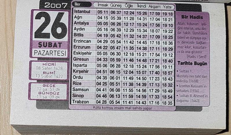26 ŞUBAT 2007 PAZARTESİ - TAKVİM YAPRAĞI - DOĞUM GÜNÜ HEDİYESİ - TÜRMATSAN TAKVİMİ - SULTAN 1. MUSTAFA'NIN TAHT'DAN İNDİRİLİŞİ (1618)- İZZETTİN KASSAM'IN ŞEHADETİ (1936)- SULTAN 2. AHMED'İN DOĞUMU (1643)- KADIN ERKEK DENGESİ, en son 21 gün önce güncellenmiştir.