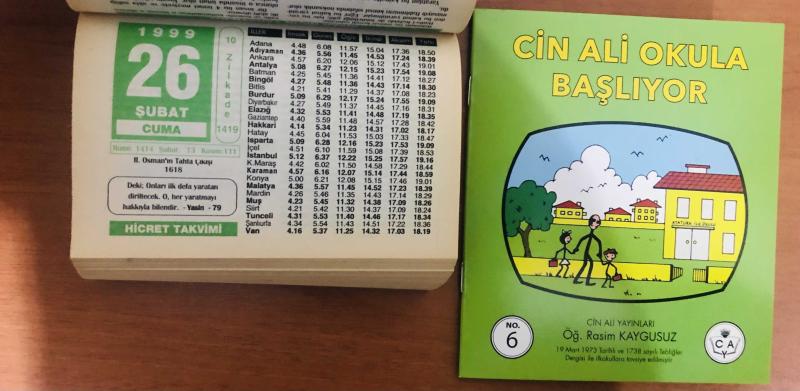 26 Şubat 1999 hediyelik orijinal Hicret takvim yaprağı (Cin Ali kitabı hediyeli:) başlıklı ürün, Efemera, Müzik, Sinema > Belge ve Evraklar > Takvimler kategorisi altında İkinci El olarak satılmaktadır.