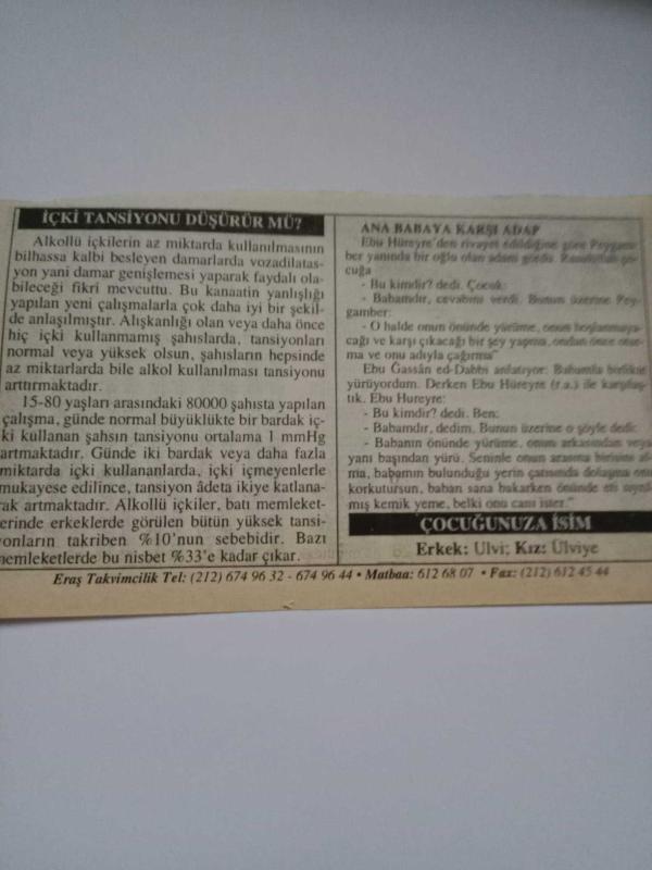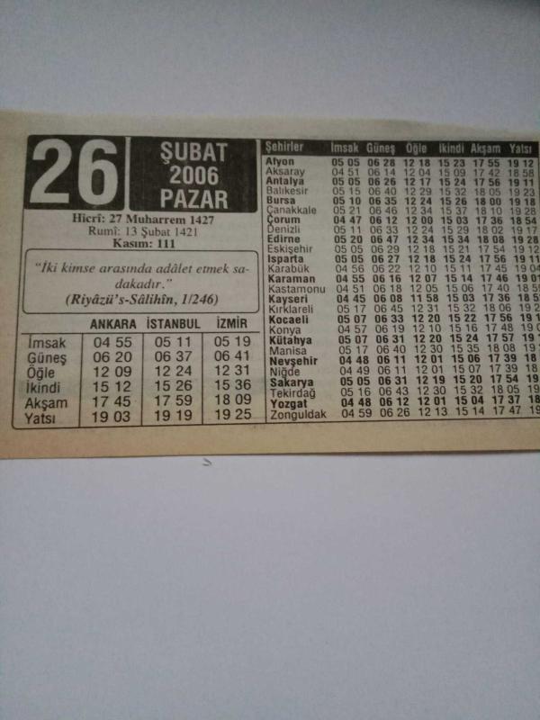 26 Şubat 2006-Orijinal Takvim Yaprağı-Doğum Günü-Söz,Nişan,Nikâh,Düğün ve Önemli Günler Hediyesi-ERAŞ Hizmet Takvimi-Ayet-Hadis(Riyâzü's-Sâlihîn,1/246)-İçki Tansiyonu Düşürür Mü?-Çocuğunuza İsim:Ulvi,Ülviye, en son 3 ay önce güncellenmiştir.