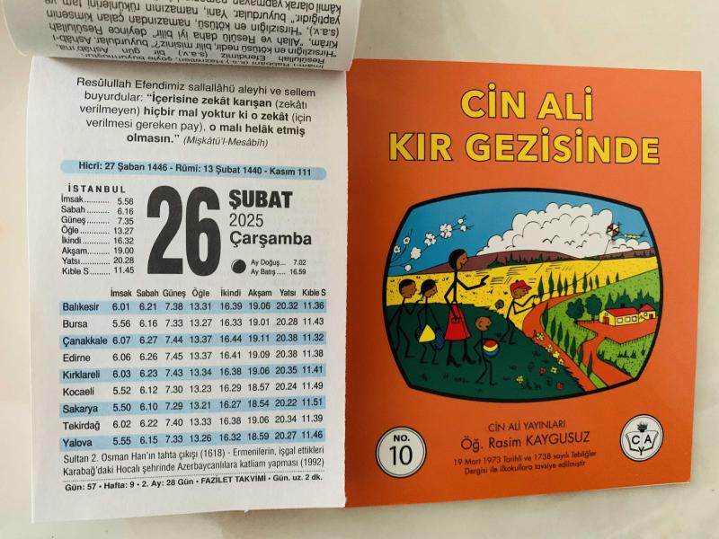 26 Şubat 2025 hediyelik orijinal Fazilet takvim yaprağı (Cin Ali kitabı hediyeli:), en son 7 ay önce güncellenmiştir.