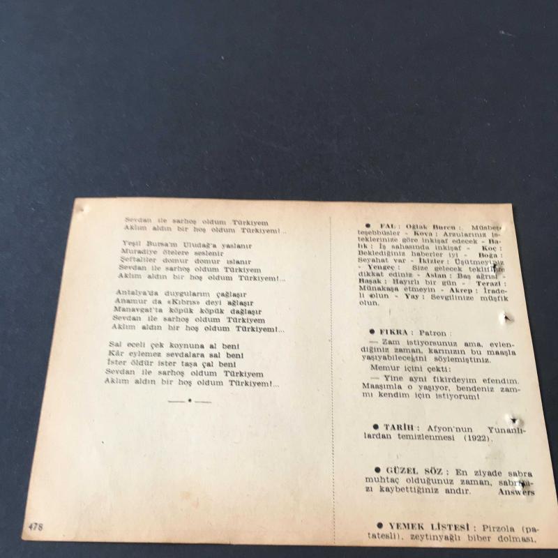 27 AĞUSTOS 1958 -TAKVİM YAPRAĞI-DOĞUM GÜNÜ HEDİYESİ-AJANS-TÜRK ŞİİRLİ VE SAATLİ TÜRKİYE TAKVİMİ,ÖZBEK İNCEBAYRAKTAR,FAL,FIKRA,AFYONUN YUNANLILARDAN TEMİZLENMESİ 1922,GÜZEL SÖZ,YEMEK LİSTESİ, en son 8 ay önce güncellenmiştir.