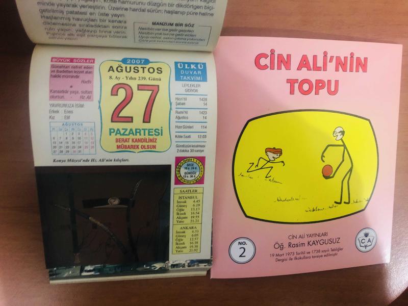 27 Ağustos 2007 hediyelik orijinal Ülkü takvim yaprağı (Cin Ali kitabı hediyeli:) başlıklı ürün, Efemera, Müzik, Sinema > Belge ve Evraklar > Takvimler kategorisi altında İkinci El olarak satılmaktadır.