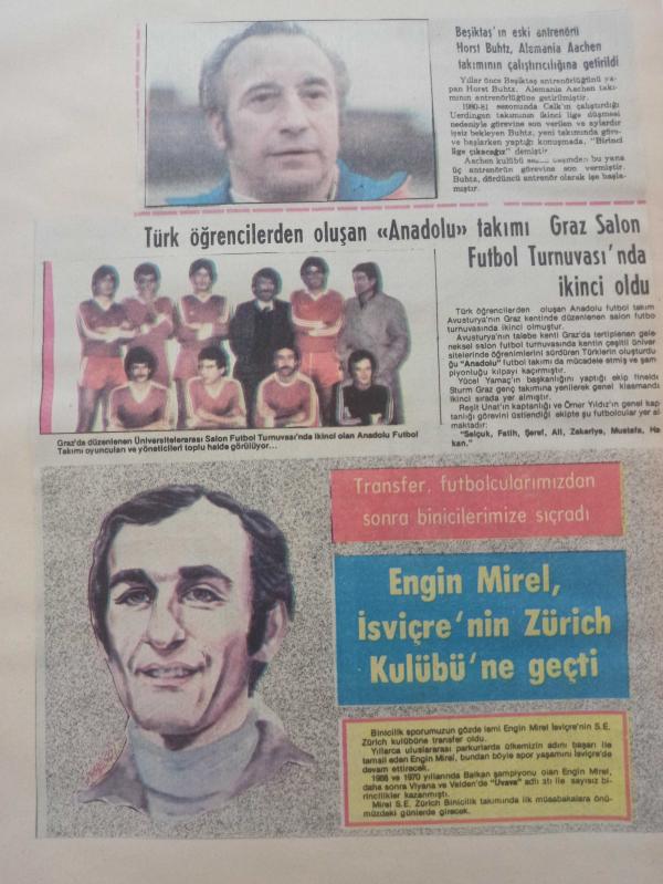 27 Aralık 1982 - Beşiktaş'ın eski antrenörü Horst Buhtz, Alamania Aachen takımının çalıştırıcılığına getirildi - Türk öğrencilerden oluşan ''Anadolu'' takımı Graz Salon Futbol Turnuvası'nda ikinci oldu - Engin Mire, İsviçre'nin Zürich Kulübü'ne geçti fotoğraf ve haberi - Gazete haberi - Tek Yaprak Arkalı Önlüdür adlı eser, Kitap > Süreli Yayınlar > Dergiler > Spor kategorisinde İkinci El olarak satıştadır.