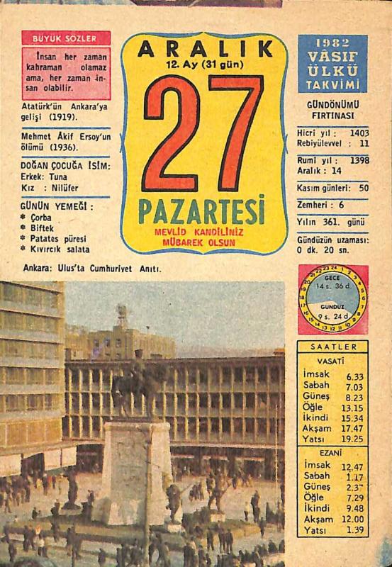 27 Aralık 1982 Takvim Yaprağı - Doğum Günü Hediyesi EFMN13648, en son 19 gün önce güncellenmiştir.