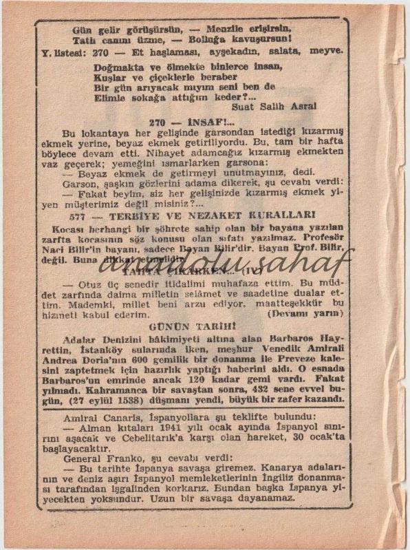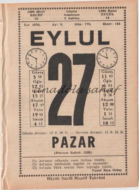 27 Eylül 1970 / Büyük Saatli Maarif Takvimi