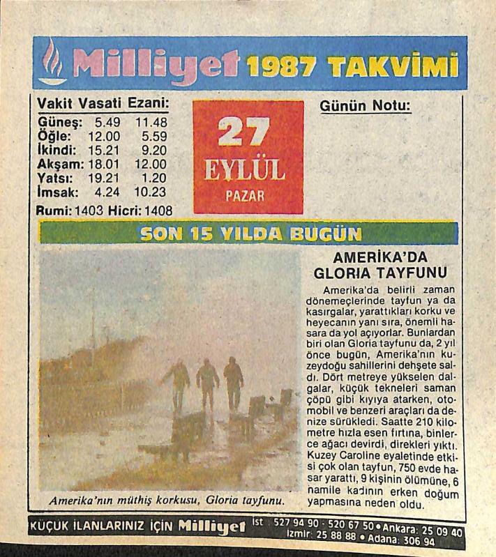 27 Eylül 1987 Takvim Yaprağı - Doğum Günü Hediyesi EFMN14144, en son 20 gün önce güncellenmiştir.