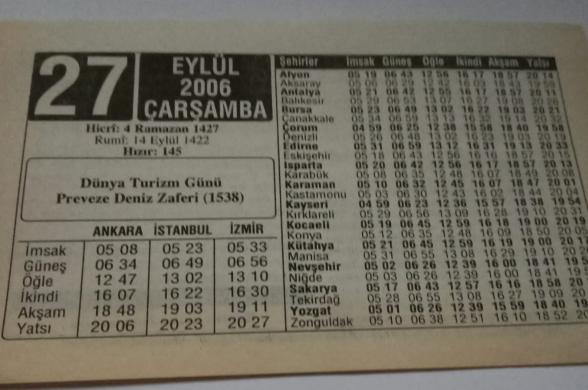 27 Eylül 2006-Orijinal Takvim Yaprağı-Doğum Günü-Söz,Nişan,Nikâh,Düğün ve Önemli Günler Hediyesi-ERAŞ Hizmet Takvimi-Ayet-Hadis(Dünya Turizm Günü)-Mükellef Kime Denir-Çocuğunuza İsim:Lütfü,Lütfiye, en son 4 ay önce güncellenmiştir.