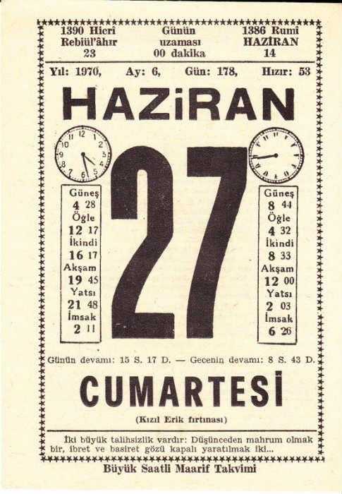 27 HAZİRAN 1970 SAATLİ MAARİF TAKVİMİ YAPRAĞI, en son 1 yıl önce güncellenmiştir.