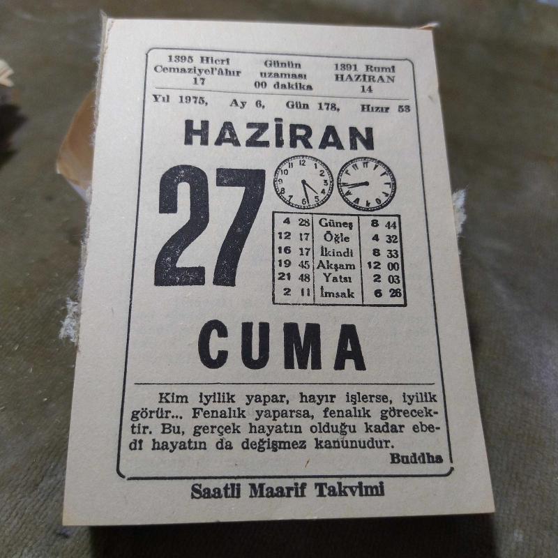 27 HAZİRAN 1975 SAATLİ MAARİF TAKVİM YAPRAĞI, en son 1 yıl önce güncellenmiştir.