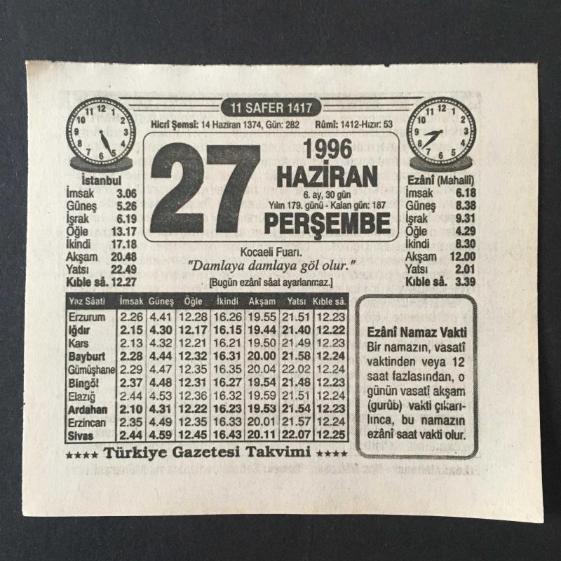 27 HAZİRAN 1996 -TAKVİM YAPRAĞI-DOĞUM GÜNÜ HEDİYESİ-TÜRKİYE GAZETESİ TAKVİMİ,KOCAELİ FUARI,HAK DİNİ ARAMAK,RAHAT BİR UYKU İÇİN,, en son 8 ay önce güncellenmiştir.