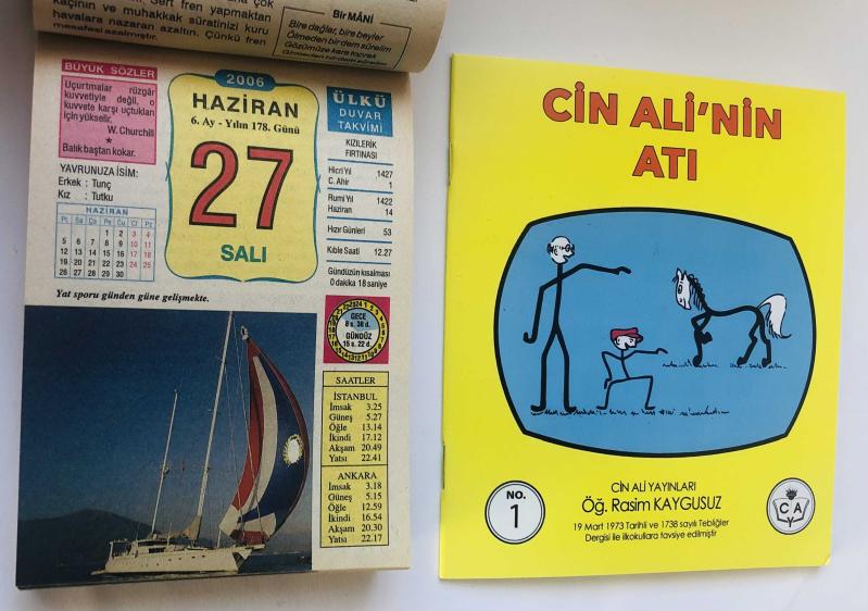 27 Haziran 2006 hediyelik orijinal Ülkü takvim yaprağı (Cin Ali kitabı hediyeli:) başlıklı ürün, Efemera, Müzik, Sinema > Belge ve Evraklar > Takvimler kategorisi altında İkinci El olarak satılmaktadır.