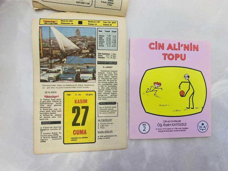 27 Kasım 1981 hediyelik orijinal Hürriyet takvim yaprağı (Cin Ali kitabı hediyeli:), en son 7 ay önce güncellenmiştir.