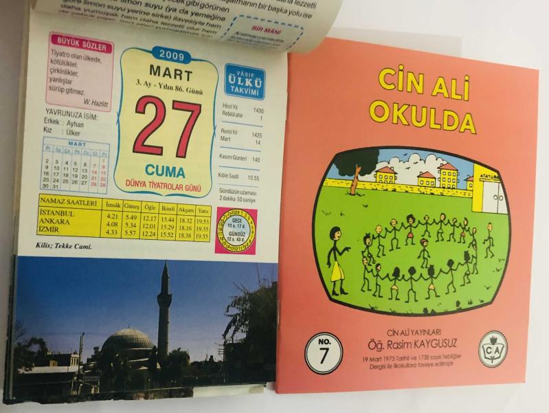 27 Mart 2009 hediyelik orijinal Ülkü takvim yaprağı (Cin Ali kitabı hediyeli:) başlıklı ürün, Efemera, Müzik, Sinema > Belge ve Evraklar > Takvimler kategorisi altında İkinci El olarak satılmaktadır.