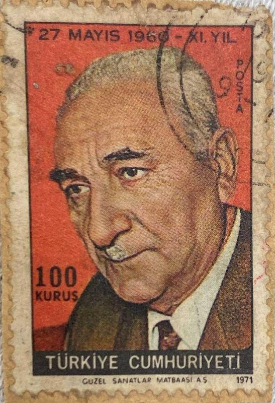 27 Mayıs 1960 darbesi’nin anısına basılan pul-Mektup Zarfından Kesilmiş / Postadan Geçmiş Pul Filateli - Damgalı - 27 MAYIS 1960 İNKILABI XI. YILI, 100 KURUŞ- Türkiye Cumhuriyeti, 1 yıl önce satışa sunulmuştur.