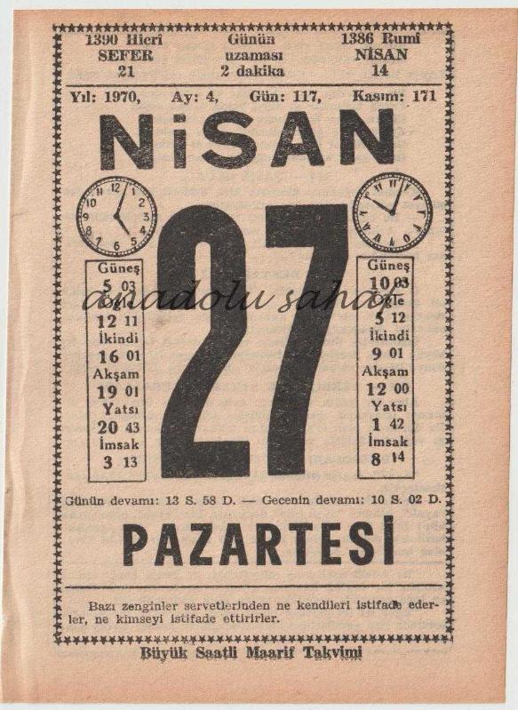 27 Nisan 1970 / Büyük Saatli Maarif Takvimi