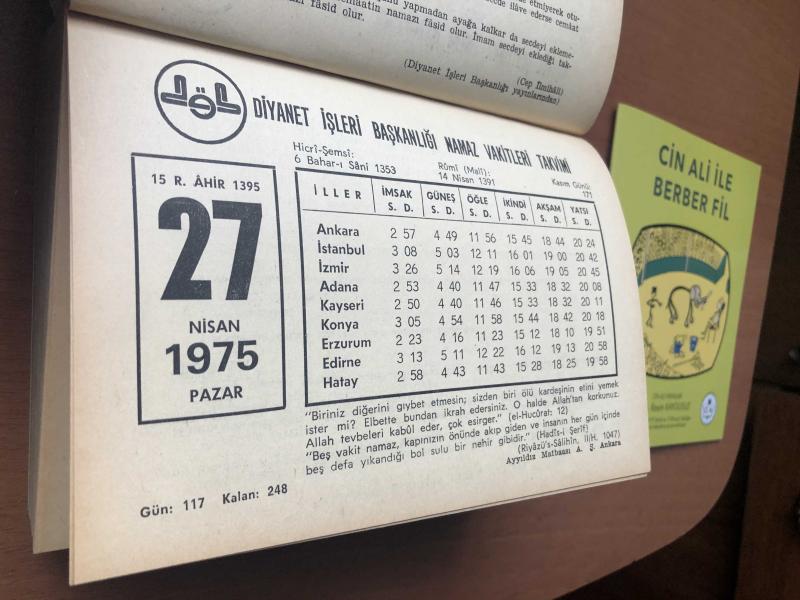 27 Nisan 1975 hediyelik orijinal Diyanet takvim yaprağı (Cin Ali kitabı hediyeli:), en son 7 ay önce güncellenmiştir.