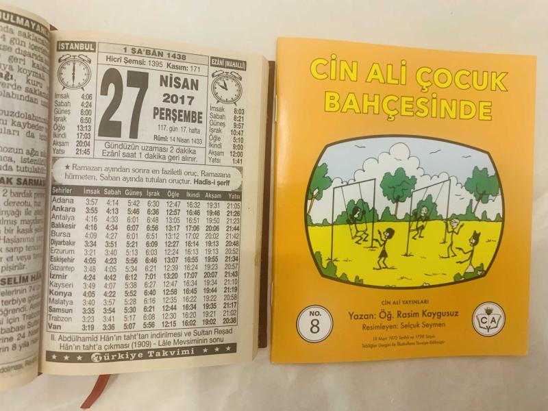 27 Nisan 2017 hediyelik orijinal Türkiye takvim yaprağı (Cin Ali kitabı hediyeli:) başlıklı ürün, Efemera, Müzik, Sinema > Belge ve Evraklar > Takvimler kategorisi altında İkinci El olarak satılmaktadır.
