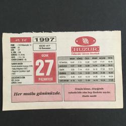 27 OCAK 1997-TAKVİM YAPRAĞI-DOĞUM GÜNÜ HEDİYESİ-HUZUR TAKVİMİ,OSMANLI DEVLETİNİN KURULUŞU 1299,HATAY ANLAŞMASI 1937,RUSLARIN ÇEÇENİSTANI İŞGALİ 1995,ÇOCUĞUNUZA İSİM, OSMANLI DEVLETİNİN KURULUŞU BÜYÜKLERİ SAYMAK,