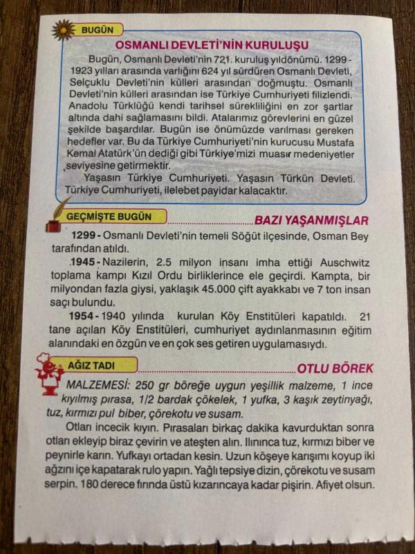 Orijinal takvim yaprağıdır.
