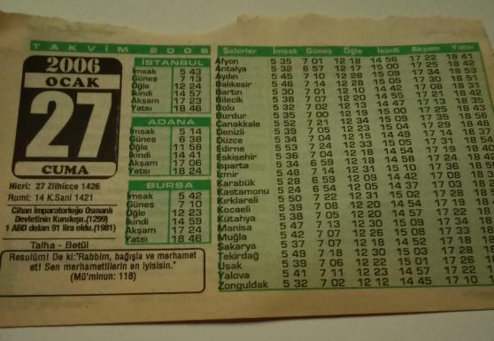 27 Ocak 2006-Orijinal Takvim Yaprağı-Doğum Günü-Söz,Nişan,Nikâh,Düğün ve Önemli Günler Hediyesi-Bizim Anadolu Takvimleri-Ayet-Hadis(Mü'minun:118)(Cihan İmparatorluğu Osmanlı Devletinin Kuruluşu(1299))-Talha,Betül-İcabeti Hak Eden Dualar-Kabul Görmeyen Dualar-Dünyayı Önceleme Hatası, en son 2 ay önce güncellenmiştir.