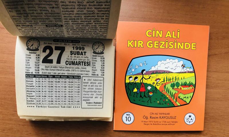 27 Şubat 1999 orijinal Türkiye gazetesi takvim yaprağı (Cin Ali kitabı hediyeli :) başlıklı ürün, Efemera, Müzik, Sinema > Belge ve Evraklar > Takvimler kategorisi altında İkinci El olarak satılmaktadır.