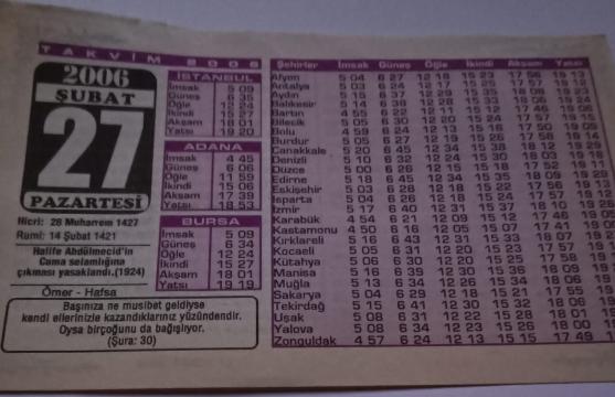 27 Şubat 2006-Orijinal Takvim Yaprağı-Doğum Günü-Söz,Nişan,Nikâh,Düğün ve Önemli Günler Hediyesi-Bizim Anadolu Takvimleri-Ayet-Hadis(Şura:30)(Halife Abdulmecid'in Cuma selamlığına çıkması yasaklandı.(1924))-Ömer-Hafsa-Vermeyince Ma'bud-II, 19 gün önce satışa sunulmuştur.