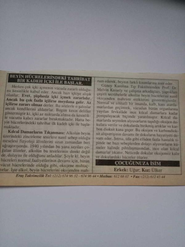 27 Şubat 2006-Orijinal Takvim Yaprağı-Doğum Günü-Söz,Nişan,Nikâh,Düğün ve Önemli Günler Hediyesi-ERAŞ Hizmet Takvimi-Ayet-Hadis(İkinci Cemre (Suya))-Beyin Hücrelerindeki Tahribat Bir Kadeh İçki İle Başlar-Çocuğunuza İsim:Uğur,Ülker başlıklı ürün, Efemera, Müzik, Sinema > Belge ve Evraklar > Takvimler kategorisi altında İkinci El olarak satılmaktadır.