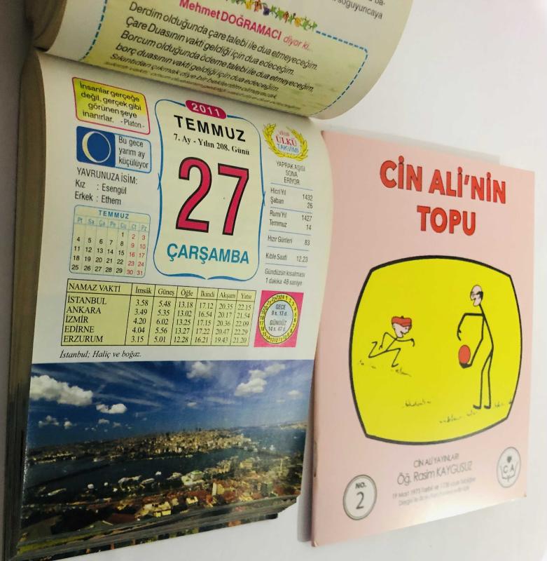 27 Temmuz 2011 hediyelik orijinal Ülkü takvim yaprağı (Cin Ali kitabı hediyeli:) başlıklı ürün, Efemera, Müzik, Sinema > Belge ve Evraklar > Takvimler kategorisi altında İkinci El olarak satılmaktadır.