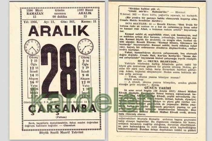 28 ARALIK 1966 SAATLİ MAARİF TAKVİMİ YAPRAĞI, en son 1 yıl önce güncellenmiştir.