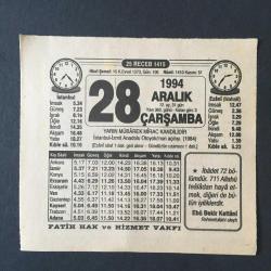 28 ARALIK 1994 -TAKVİM YAPRAĞI-DOĞUM GÜNÜ HEDİYESİ-FATİH HAK VE HİZMET VAKFI TAKVİMİ,İSTANBUL İZMİT ANADOLU OTOYOLUNUN AÇILIŞI 1984,İLK DOLMUŞ,DUYDUNUZ MU