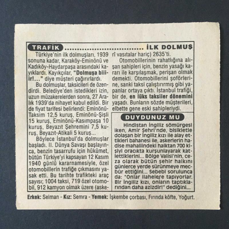 Gazeteler,dergiler,kitaplar harika hediyelerdir.Otantik,orijinal,nadir ve eski gazeteler,dergiler,kitaplar,efemeralar,objeler.Gazeteler bir aynadır.Kitaplar sadece okumak için değil birlikte yaşamak içindir . Kelimeler , notalar ,  sayılar kardeştirler.Kitaplar insanı binbir gözlü yapar.