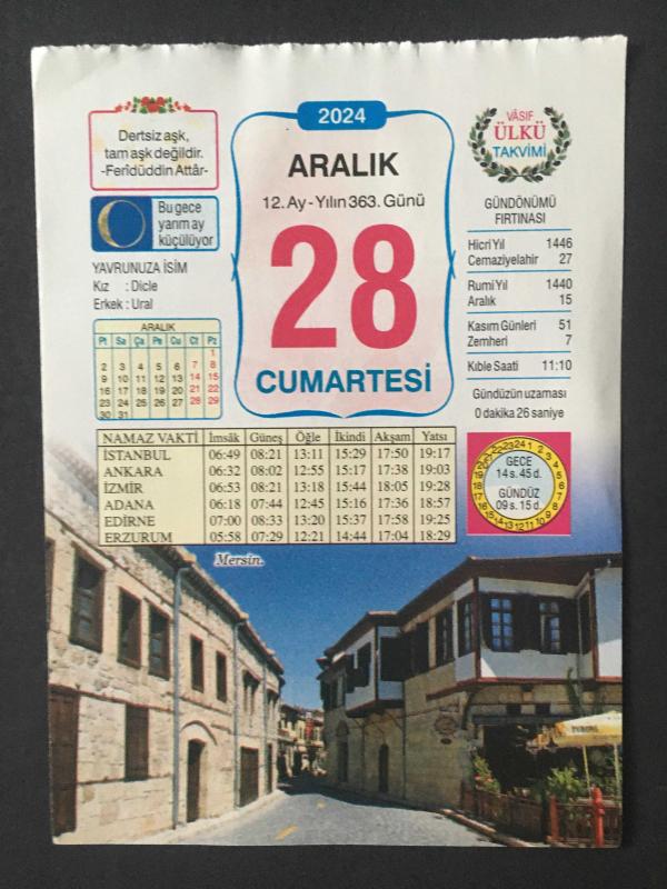 28 ARALIK 2024 -TAKVİM YAPRAĞI-DOĞUM GÜNÜ HEDİYESİ-VASIF ÜLKÜ TAKVİMİ,MERSİN,YAVRUNUZA İSİM,LUMİERE KARDEŞLER İLK GERÇEK SİNAMA GÖSTERİSİNİ GERÇEKLEŞTİRDİ,1895,ÜNİVERSİTE SPORU,MELODİKA,BU BİR RÜYA OLMALI,ALTIN SATIRLAR, 1 yıl önce satışa sunulmuştur.