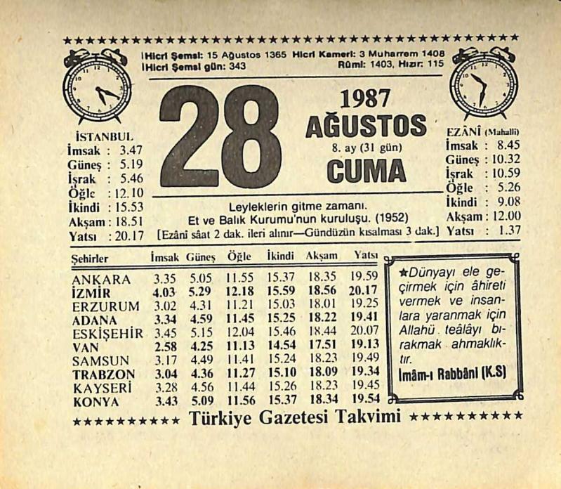 28 Ağustos 1987 Takvim Yaprağı - Doğum Günü Hediyesi EFMN13871, en son 21 gün önce güncellenmiştir.