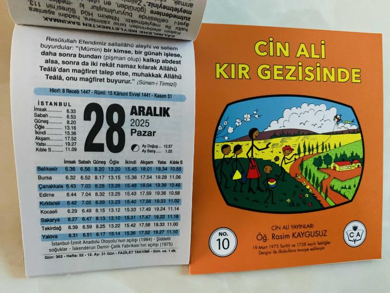 28 Aralık 2025 hediyelik orijinal Fazilet takvim yaprağı (Cin Ali kitabı hediyeli:), en son 7 ay önce güncellenmiştir.