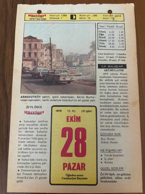 28 EKİM 1979 - TAKVİM YAPRAĞI - DOĞUM GÜNÜ HEDİYESİ - HÜRRİYET TAKVİMİ - HAREM'İN SIRRI ROMANI - Türkiye'de ilk genel nüfus sayımı: 13.650.000 kişi (1927), en son 7 ay önce güncellenmiştir.