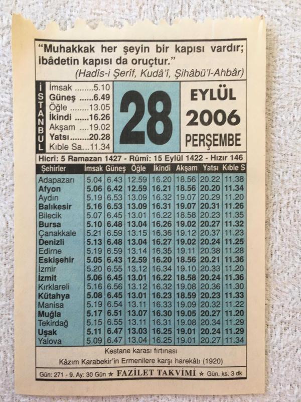 28 EYLÜL 2006-TAKVİM YAPRAĞI-DOĞUM GÜNÜ HEDİYESİ-FAZİLET TAKVİMİ, 1 yıl önce satışa sunulmuştur.