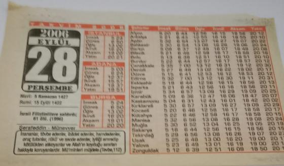28 Eylül 2006-Orijinal Takvim Yaprağı-Doğum Günü-Söz,Nişan,Nikâh,Düğün ve Önemli Günler Hediyesi-Bizim Anadolu Takvimleri-Ayet(Tevbe:112)-İsrail Filistinlilere saldırdı 61 ölü(1996)-Şerafettin,Münevver-, dün satışa sunulmuştur.