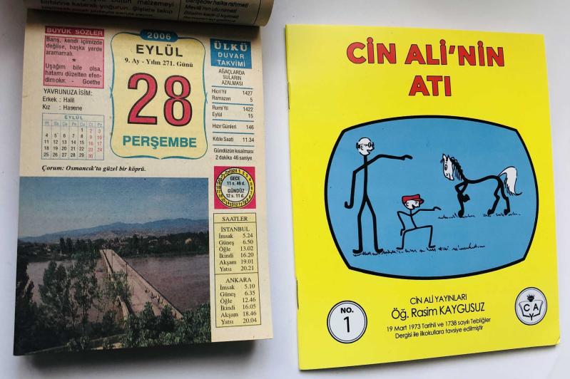 28 Eylül 2006 hediyelik orijinal Ülkü takvim yaprağı (Cin Ali kitabı hediyeli:) başlıklı ürün, Efemera, Müzik, Sinema > Belge ve Evraklar > Takvimler kategorisi altında İkinci El olarak satılmaktadır.