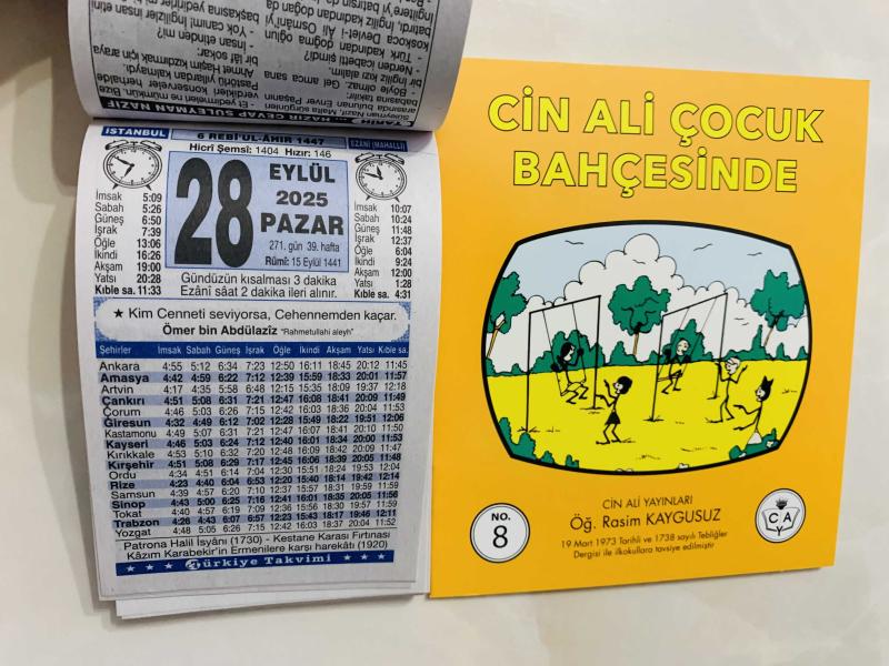 28 Eylül 2025 hediyelik orijinal Türkiye takvim yaprağı (Cin Ali kitabı hediyeli:), en son 7 ay önce güncellenmiştir.
