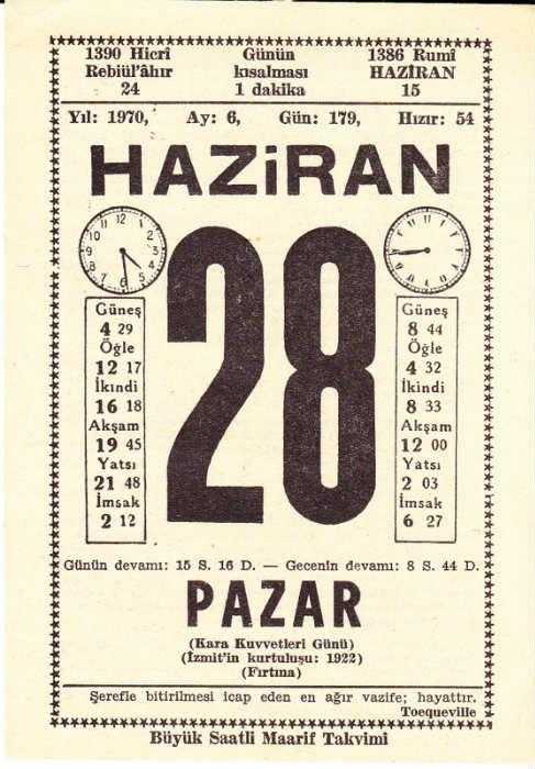 28 HAZİRAN 1970 SAATLİ MAARİF TAKVİMİ YAPRAĞI, en son 1 yıl önce güncellenmiştir.