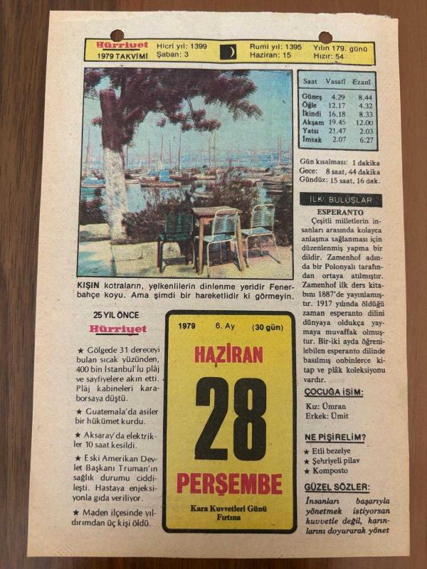 28 HAZİRAN 1979 - TAKVİM YAPRAĞI - DOĞUM GÜNÜ HEDİYESİ - HÜRRİYET TAKVİMİ - PİS BİR İŞ ROMANI - Fethiye'de "Akdeniz Festivali" - Prof. Fuat Köprülü'nün ölümü (1966) - Besteci Hacı Arif Bey'in ölümü (1885), en son 8 ay önce güncellenmiştir.
