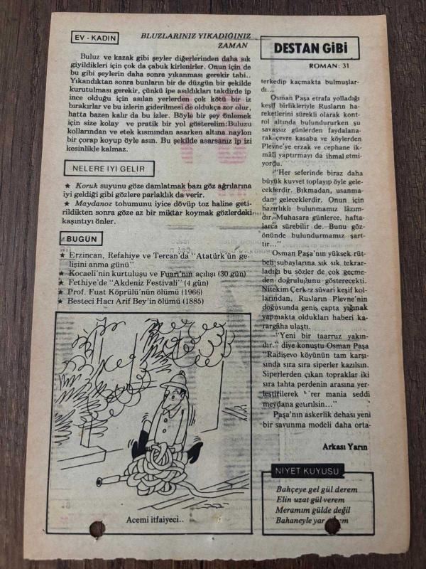 28 HAZİRAN 1980 - TAKVİM YAPRAĞI - DOĞUM GÜNÜ HEDİYESİ - HÜRRİYET TAKVİMİ - DESTAN GİBİ ADLI ROMAN - Prof. Fuat Köprülü'nün ölümü (1966) - Besteci Hacı Arif Bey'in ölümü (1885) başlıklı ürün, Efemera, Müzik, Sinema > Belge ve Evraklar > Takvimler kategorisi altında İkinci El olarak satılmaktadır.