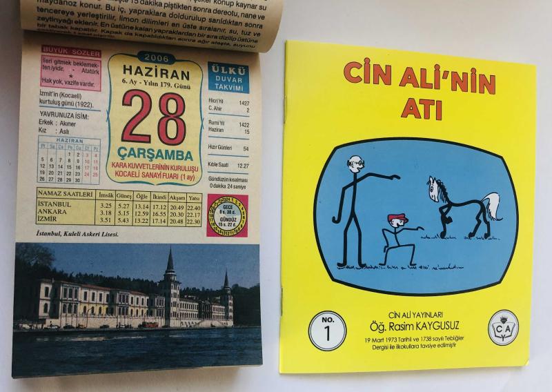 28 Haziran 2006 hediyelik orijinal Ülkü takvim yaprağı (Cin Ali kitabı hediyeli:) başlıklı ürün, Efemera, Müzik, Sinema > Belge ve Evraklar > Takvimler kategorisi altında İkinci El olarak satılmaktadır.