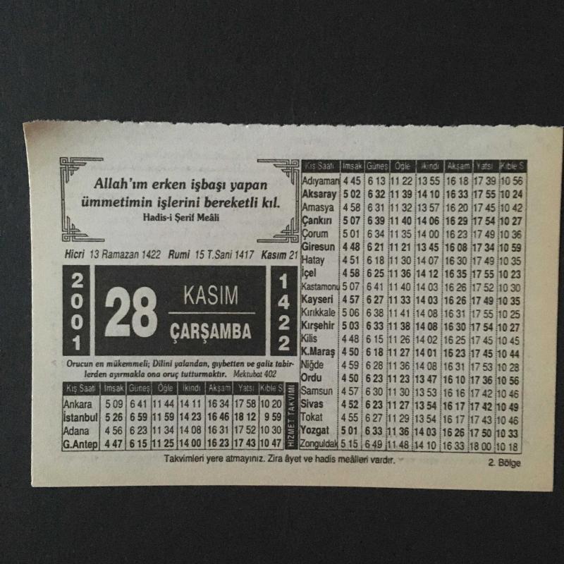 28 KASIM 2001-TAKVİM YAPRAĞI-DOĞUM GÜNÜ HEDİYESİ-HİZMET TAKVİMİ,İBADET VE SA Y,NİMETİN VE ARKADAŞIN EN İYİSİ, en son 8 ay önce güncellenmiştir.