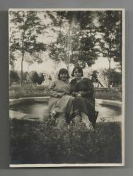 ** 28 MAYIS 1933 BEHİCE VE ARKADAŞININ BAHÇE FOTOĞRAFI ** 11.8 x 8.7 cm.ebadında,arkası ithaflı yazılı ve tarihli,gayet temiz durumda eski fotoğraf...