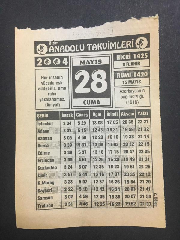 28 MAYIS 2004-TAKVİM YAPRAĞI,DOĞUM GÜNÜ HEDİYESİ-BİZİM ANADOLU TAKVİMLERİ,AZERBAYCANIN BAĞIMSIZLIĞI 1918,DOST, en son 8 ay önce güncellenmiştir.