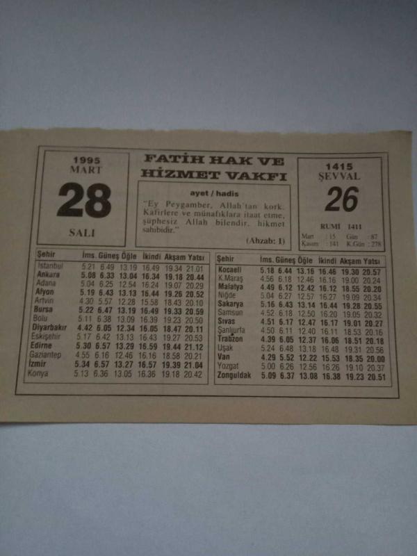 28 Mart 1995-Orijinal Takvim Yaprağı-Doğum Günü-Söz,Nişan,Nikâh,Düğün ve Önemli Günler Hediyesi-Fatih Hak ve Hizmet Vakfı-Ayet/Hadis(Azhab:1)-İmam Buhari-Sözün Özü-25 Yıl Önce, en son 3 ay önce güncellenmiştir.