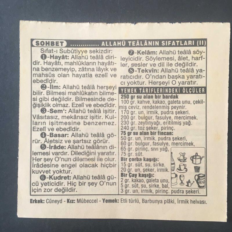 28 NİSAN 1995 -TAKVİM YAPRAĞI-DOĞUM GÜNÜ HEDİYESİ-TÜRKİYE GAZETESİ TAKVİMİ,AFGANİSTANDA MÜCAHİTLERİN İDAREYİ ELE AMASI,1992,MANİSA MESİR ŞENLİKLERİ 28-30 NİSAN,ALLAHU TEALANIN SIFATLARI 2,YEMEK TARİFLERİNDEKİ ÖLÇÜLER başlıklı ürün, Efemera, Müzik, Sinema > Belge ve Evraklar > Takvimler kategorisi altında İkinci El olarak satılmaktadır.