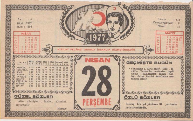 28 Nisan 1977 - Kızılay Takvim Yaprağı, 3 gün önce satışa sunulmuştur.