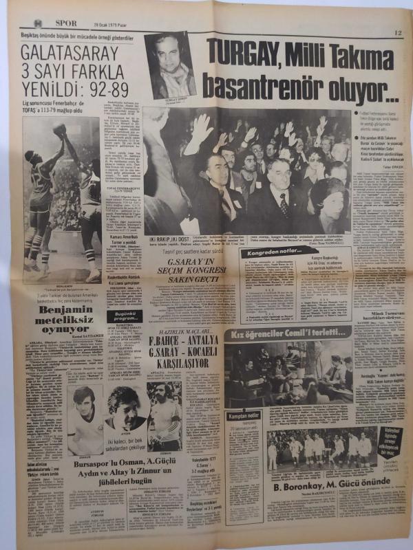 Kitap 1979 yılında yayınlanmıştır. 2 sayfadır. 28 Ocak 1979 -Tercüman Gazetesi - Turgay Şeren, Milli Takıma başantrenör oluyor - Galatasaray 3 sayı farkla yenildi: 92-89 -Ali Uras - Suphi Batur - Benjamin meteliksiz oynuyor - Bursaspor'lu Osman, Ankaragücülü Aydın ve Altay'lı Zinnur'un jübileleri bugün Gazete tam değildir sadece 2 sayfası mevcuttur - çift yaprak arkalı önlüdür adlı eser Türkçe dilindedir.